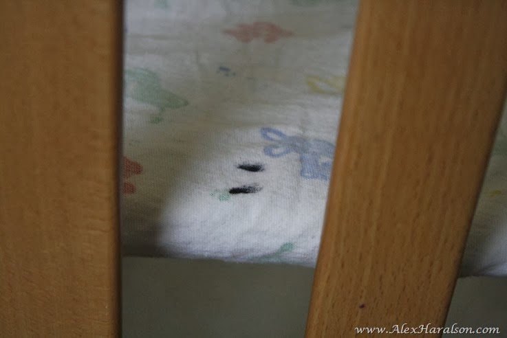 Using a thrifted crib sheet, I laid it over the frame.