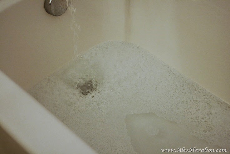 So here’s what I did. I started running the bathtub and poured in some Basic G, probably a couple teaspoons.